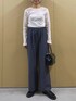 ⭐︎シアートップス 抵抗無く着れるくらいの適度な透け感とすっきり目なシルエットなのでジャケットのインナー使いにもおすすめです。 肌触りのよいカットソーですが、少しキレイ見えしてくれる素材感なのでカジュアルになり過ぎず、色々なシーンでお使いいただけます。 前後着用可能なのでインナーとして着る時、一枚着として着る時、ネックレスとのバランスなどで衿ぐりを変えられて便利です◎ ⭐︎パンツ サラッとした肌触りと体のラインを拾わないセミワイド型、ウエストもオールゴムで楽ちんに着用出来ました。 38サイズ着用で全体的に適度な余裕もあり、長さがローファー合わせで足の甲に少しかかるくらいのすっきりちょうど良い丈感でした。 リネン混なので長いシーズン着れてスタイリング次第で幅広いコーディネートにお使いいただけます♪ ⭐︎ローファー 想像よりもソフトな素材で甲高な私の足でも窮屈感なく楽ちんに履けました。 普段23.5〜24.0センチを履きますがMサイズで少し厚地なソックスでも問題ないサイズ感でした。
