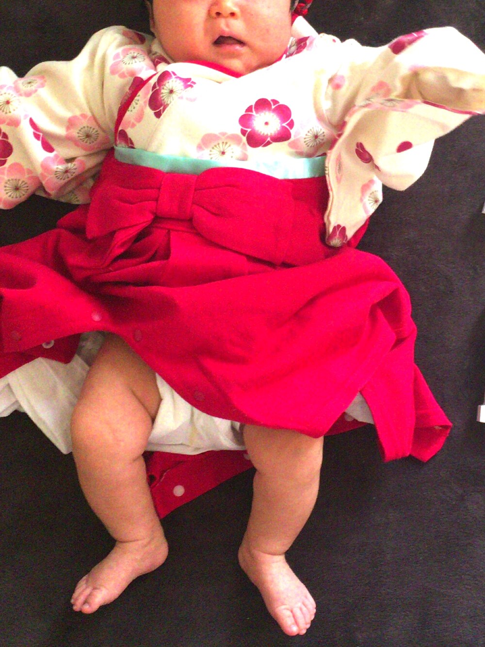生後71日目。 初節句で念願の袴ロンパース❣️ まだまだ着たいから横着して、身長60cmのところをサイズ80cmにしちゃいました😂
