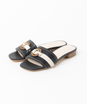 シーズンテイストの素材やパーツが贅沢に取り入れられているサンダルです✨ ブラックのカラーはホワイトのラインが目を引きます!!