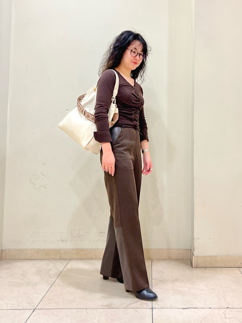101778(オゥ バニスター 新宿高島屋店)のトートバッグ「Valley/かがりレザー2WAYワンショルダーバッグ」を使ったコーディネート