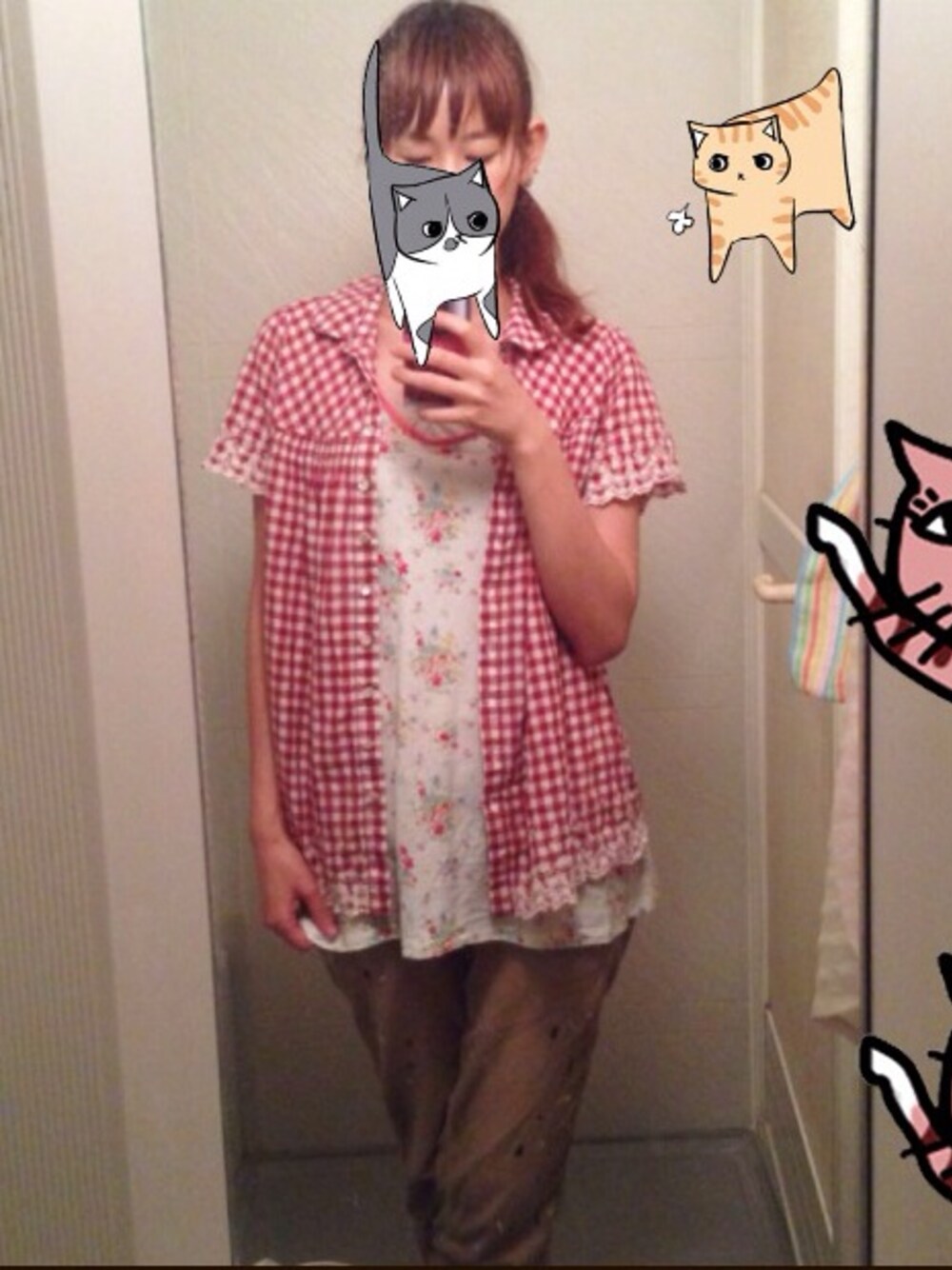 ちょっとそこまでCD(*^_^*) 赤チェックシャツ…しまむら 中に着たシャツ…ユニクロコラボ パンツ…キューブシュガー