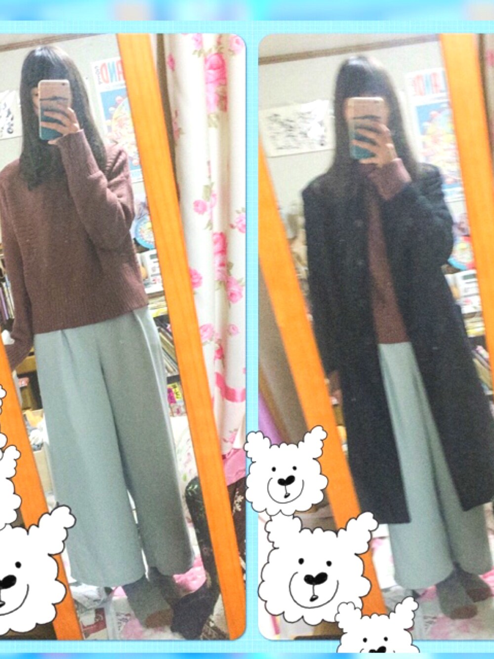 新しい服着たかったので、寒かったけど寒色カラー。 トップスに茶色をあわせて、チョコミントコーデになりましたw
