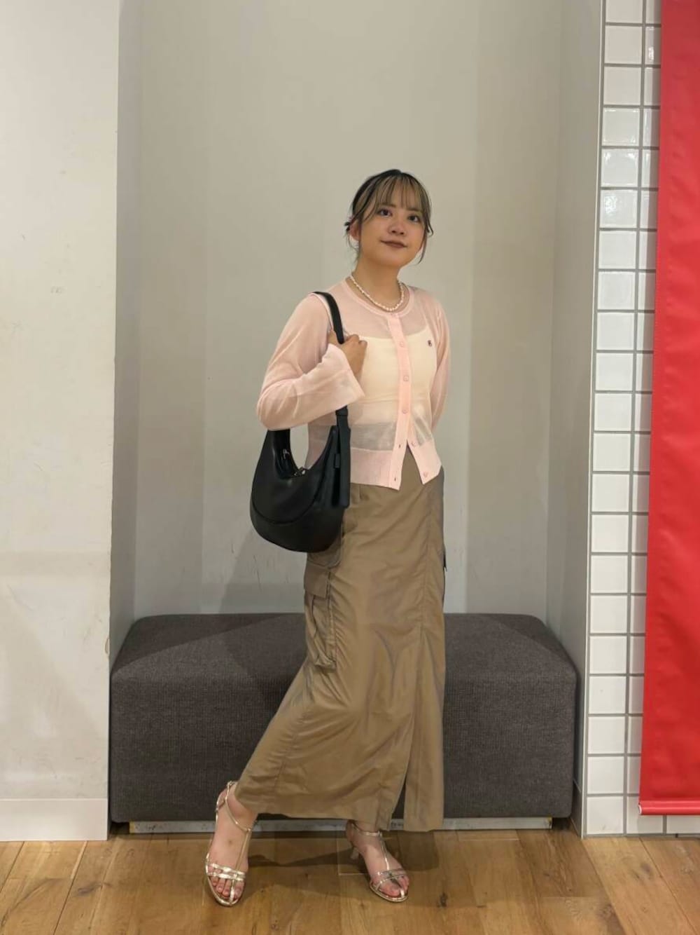 いつもご覧いただきありがとうございます🙏 Instagram▶︎▶︎@7gi__sa_4 甘すぎないピンクコーデのご紹介です🫶🏻 色味が濃すぎないので、ピンクに挑戦したい方にもオススメです◎ カーゴデザインのタイトスカートで縦ラインを意識👍🏻 ウエスト辺りのボタンを開けることで抜け感がでます◎ ぜひ、店頭・WEBでご覧ください😊