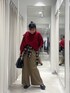 着用コーデ:163件いつもご覧いただきありがとうございます🙏 Instagram▶︎▶︎@7gi__sa_4 毎年人気のショルダータックニットの赤色を着用してみました! 袖もゆとり感があり、身幅もあるので体型が気になる方も着用していただけます!👍🏻 ワイドなボトムスと合わせる時は、前だけインをしてあげるとスッキリして見えてオススメです◎ バギーチノは形も綺麗なのでおすすめです! ぜひ、店頭・WEBでご覧下さい😌