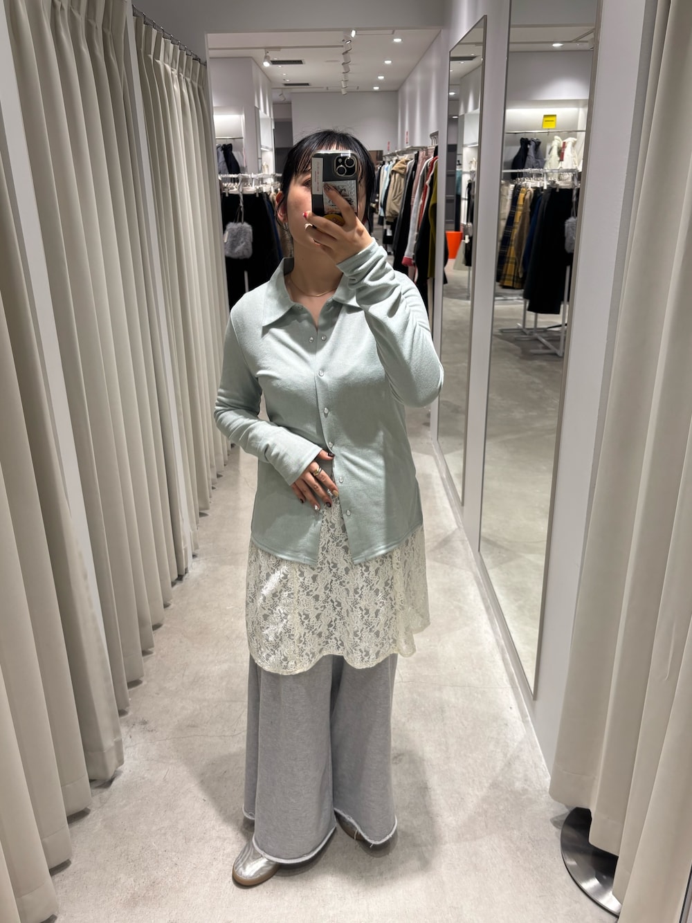 いつもご覧いただきありがとうございます🙏 Instagram▶︎▶︎@7gi__sa_4 店頭にも続々春アイテムが登場しております🌿 私もリアルバイしようかと狙っているこのフロントボタンのトップスが、質感がサラッとしており少しシアーな感じで、骨ストの私でもスッキリ見えしてオススメです◎ 今の季節はイマドキな形でインナーとレイヤードするスタイリングがオシャレ度増してオススメです🫶🏻 ぜひ、店頭・WEBでご覧下さい😌