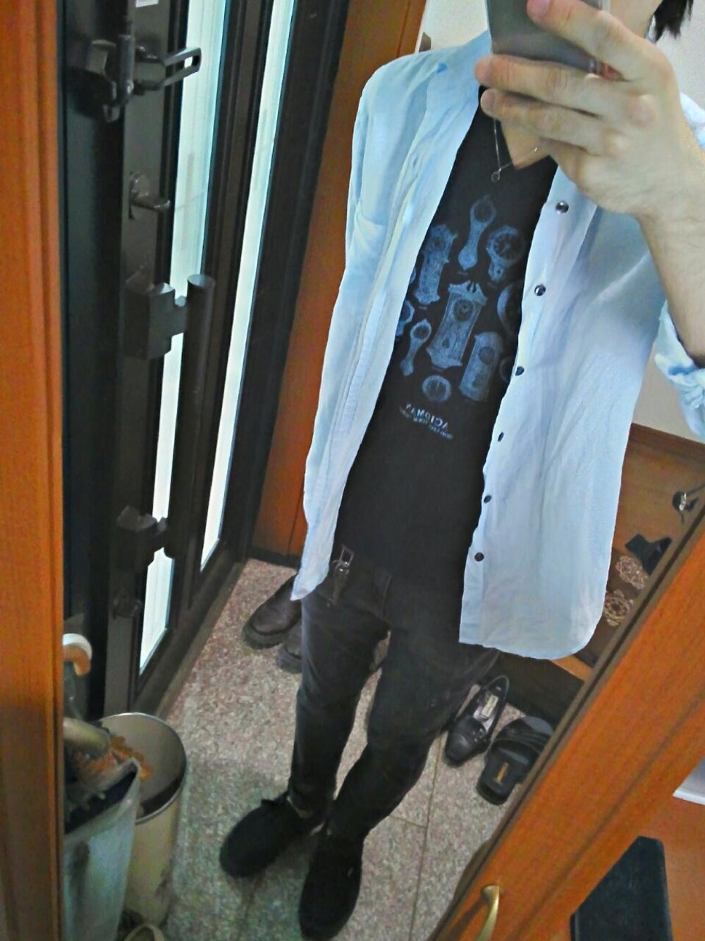 今日はACIDMANのALMA TOURのTシャツにリネンシャツを羽織って。 下はスキニーで。
