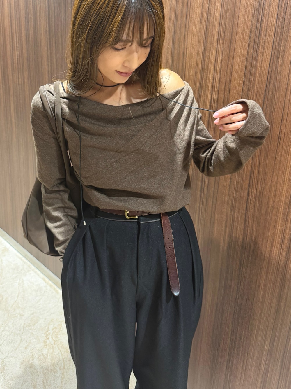オフショルでヘルシーに肌見せ◎ チョーカーで大人っぽコーデに! オフショルは近日ZOZOTOWN発売予定◎ Instagram @nr_049