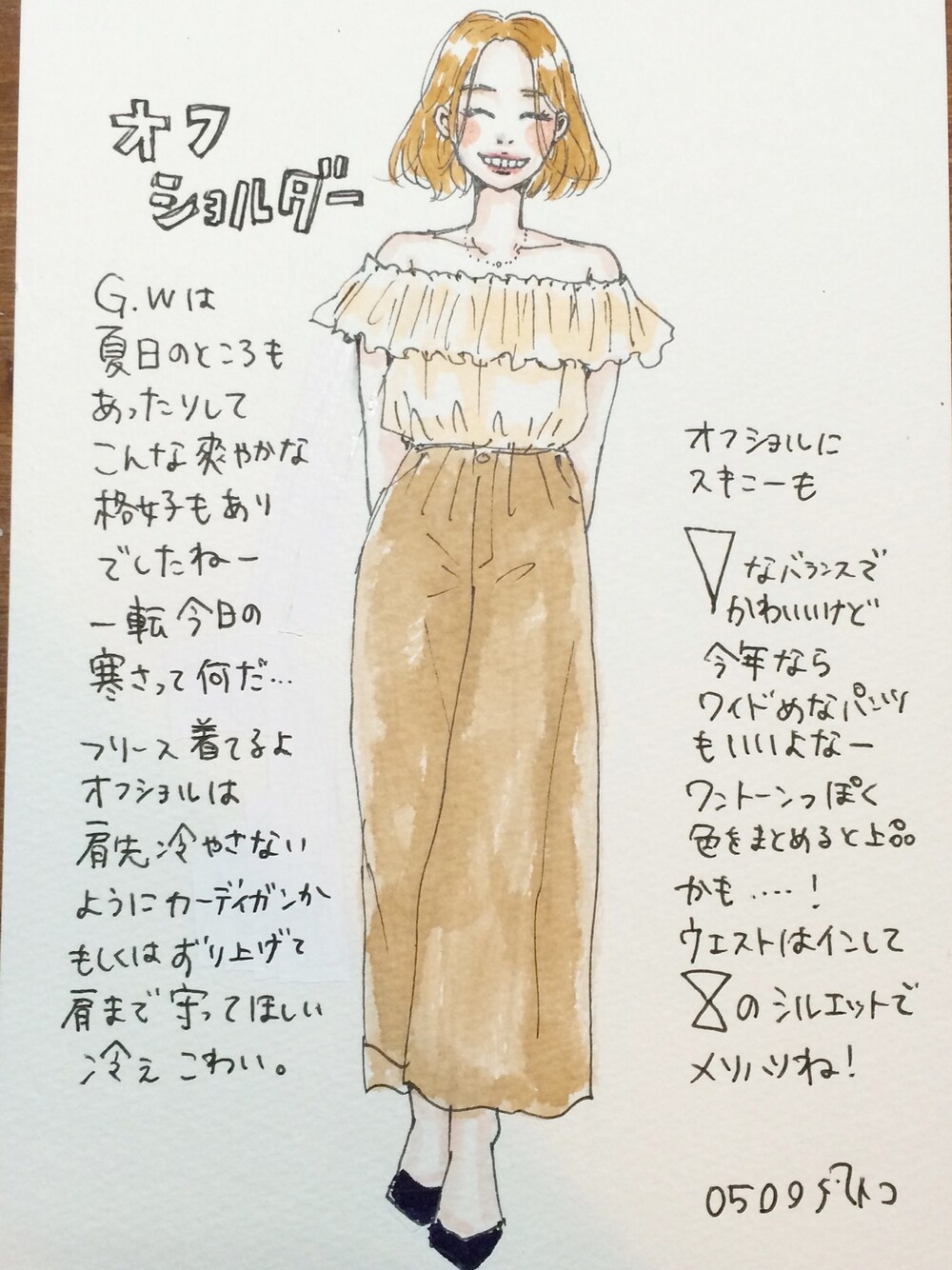 大人っぽいオフショルダーコーデ