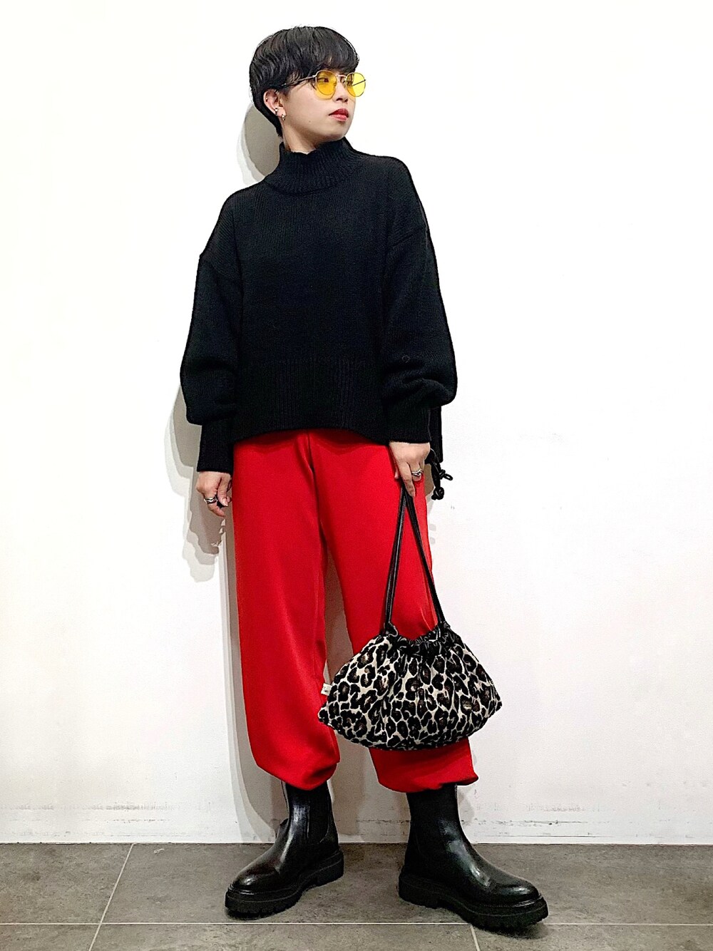 ━━━━━━━━━━━━━━━━━━━━━━━━ ゴツめのブーツ合わせでかっこよく❤️🔥 パンツインでよりおしゃれなシルエットに☝🏻 ニットはベーシックな形で着回しやすいデザインです👌🏻 長すぎない丈感なのて、インナーにカットソーを入れてチラ見せスタイルもおすすめ✨ ━━━━━━━━━━━━━━━━━━━━━━━━
