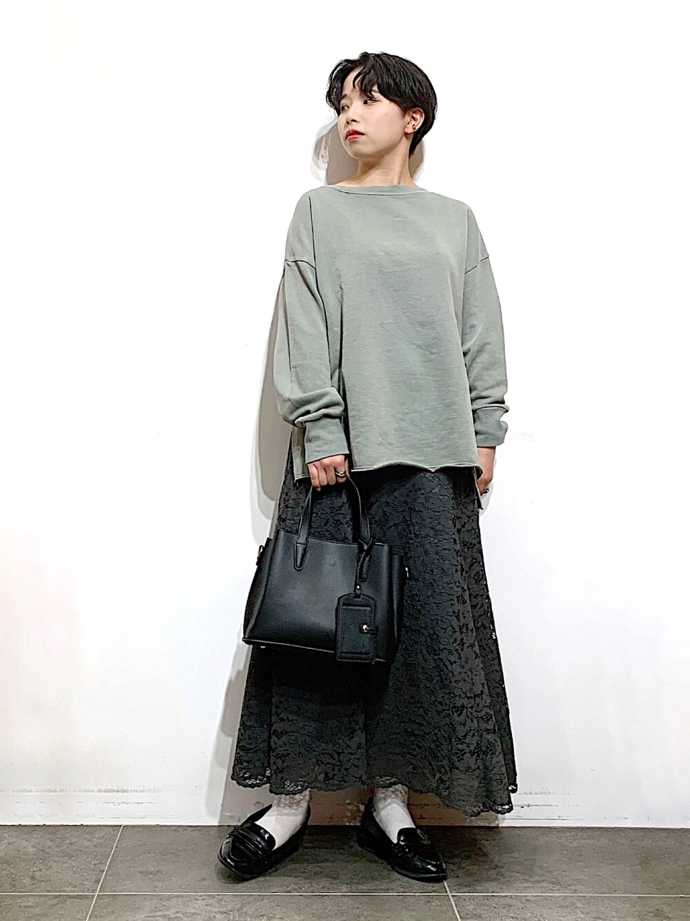 ━━━━━━━━━━━━━━━━━━━━━━━━ ゆったりスウェットでお出掛けコーデに👜 おうちでもストレスなく着れる大人スウェットに、落ち着いた色味のレーススカートでお出かけ仕様なスタイリングにしてみました💚 気になるボディラインが隠れて、尚且つマーメイドシルエットできれいに🧜🏻♀️ ━━━━━━━━━━━━━━━━━━━━━━━━