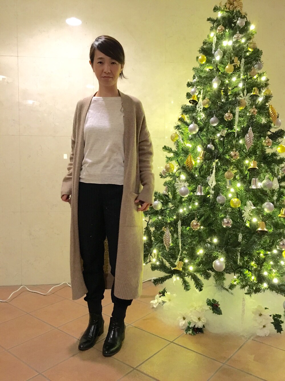 いつものシンプルコーデ 住み始めて4年ですが、今年突然マンションのロビーにクリスマスツリーが飾られました。ちょいちょい一緒に写りますσ^_^;
