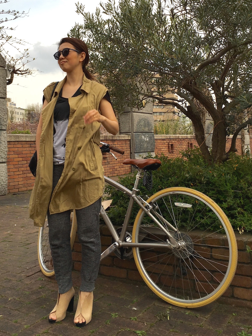 スウェットパンツとノースリトレンチを合わせたくて、こうなりました。