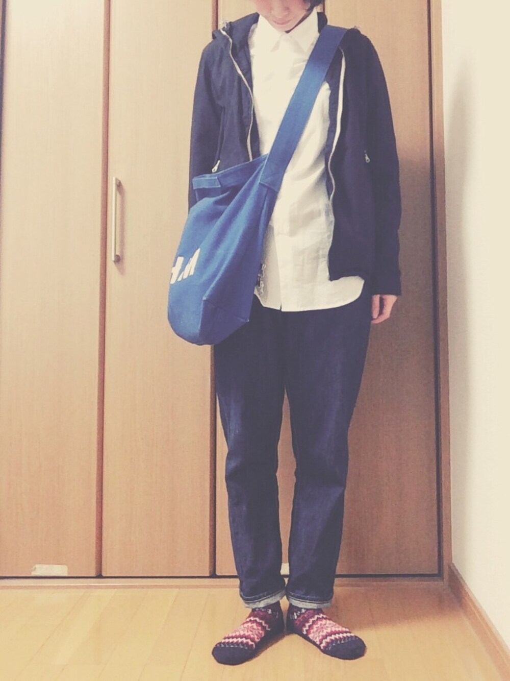形とサラッとした質感に惚れて買ったお気に入りのシャツです。 やっぱり色が暗くて青っぽいものに偏る傾向にあるなぁ☂