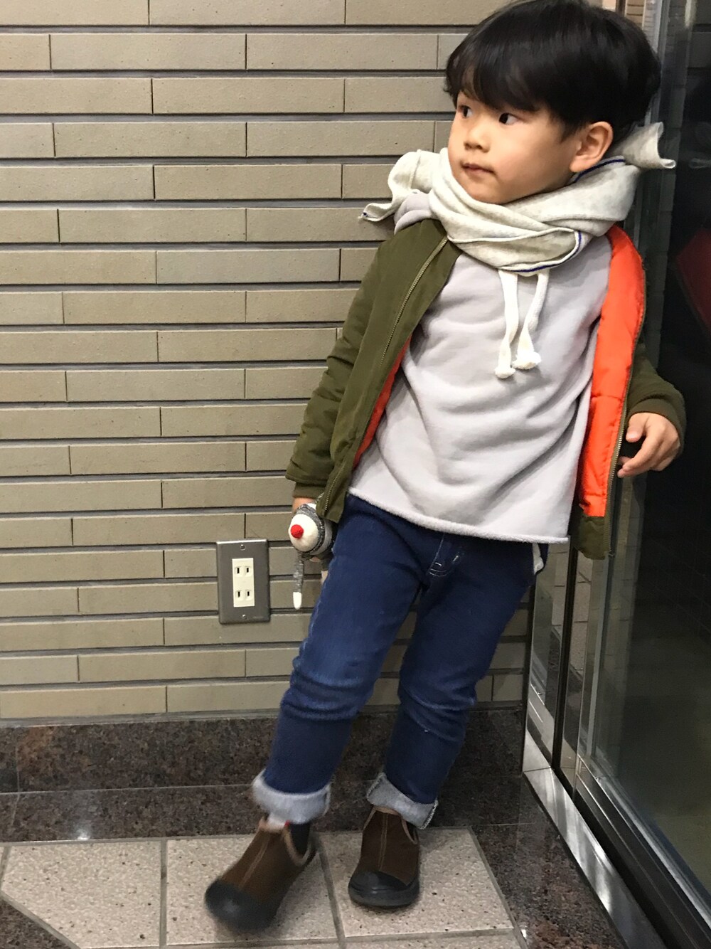 パーカー形が可愛いから一枚で着せたいけどさすがにまだ寒すぎか。笑 早くあったかくならんかなぁ⛄️ マフラーもいろち買いしちゃったし兼用しよっと😇💗