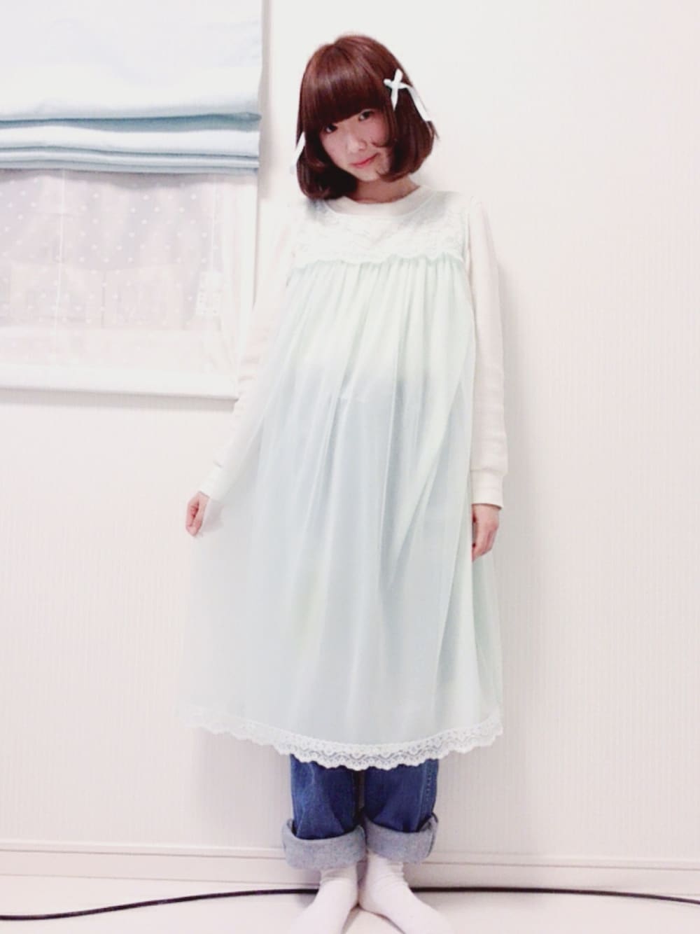 久しぶりの投稿 今日はこの間古着屋さんで買ったネグリジェを着ました💫