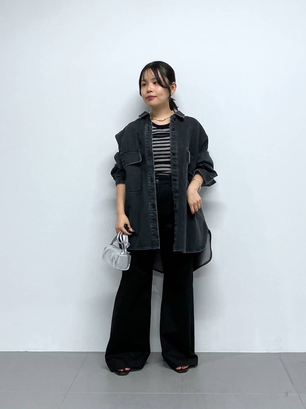 【デニムビッグシャツ】 オーバーサイズが今っぽいデニムシャツ。 ヒップが隠れる丈感なので体型カバーにも◎ 肌寒い時期にさっと羽織れる万能アイテムです! 【Miller/〈別注〉PackTee】 ぴったりとした着用感のタンクトップ。 ロンTとのセット商品ですが、 タンクトップ1枚でインナーとして着用しました! 合わせるアイテムで長く着回せます♪ 【ライトチノフレアパンツ】 スタイルアップが叶うフレアパンツ! 膝が絞られたシルエットなので細見え効果も。 ウエストが大きめだったので ベルトループにボタンを通して着用しています◎