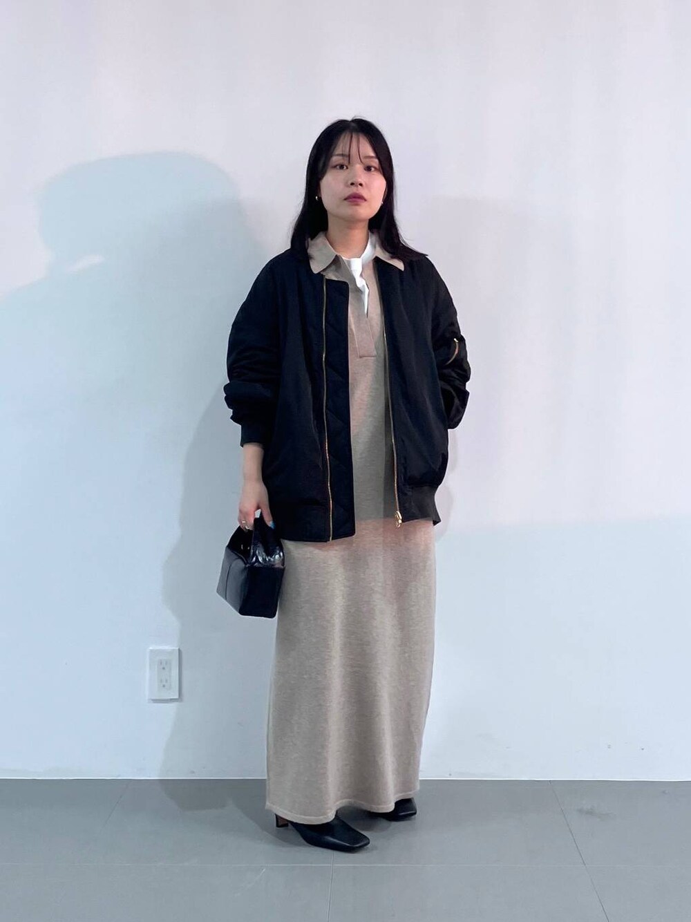 【リバーシブルMA-1】 大人気だったMA-1が今年もWEB限定で登場しました! ゆったりシルエットなので体型カバーが叶います✨ リバーシブルになっているので、気分でカラーを変えられるのも嬉しいポイント💡 150㎝でヒップが隠れる丈感です。 【スキッパーニットワンピース】 落ち感のあるシルエットが大人っぽいワンピ。 スキッパーで骨ストさんもすっきり見えるデザインです! 胸元が深めに開いているので露出を抑えたい方はTシャツを合わせるのも◎ 150㎝には丈が長かったのでヒールの高い靴と合わせています☺︎