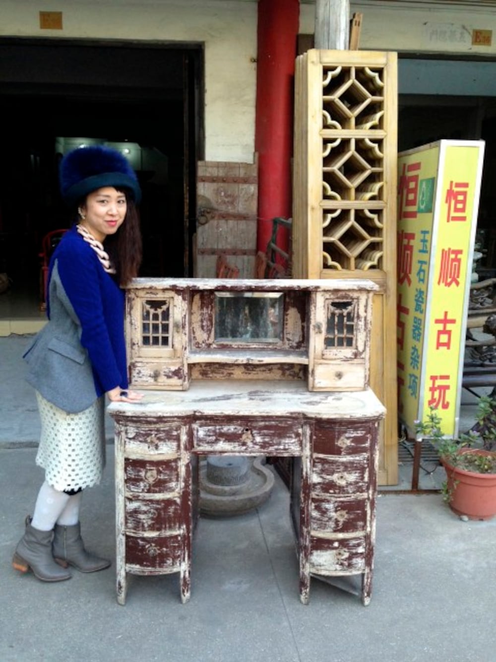 中国・買付けの旅にて♦part,2 浙江省のアンティーク家具を扱うショップにて 素敵なデスクとの出会い💗 上海に近い浙江省は、フランス租界時代のアンティークが 出てくるエリアなのです。 かなりボロボロだったけど、日本に届いたらリペアして 美しく蘇らせてあげよう✨✨ sacaiのカットワークが美しいニットと、 goen.jのスカートで。