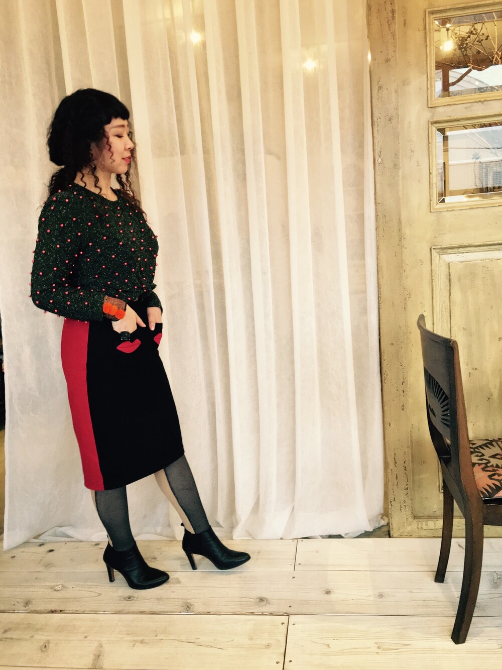 1年ぶりに髪をスパイラルに💗 春の気配を感じると、クルクルにしたくなる💗💗 カーディガンは、TOGAの赤いパールが散りばめられたもの。 スカートはkiwanda。 後ろ前でブラック/レッドの切り替え。 ポケットには💋が♡ タイツも前後切り替えでお揃いにしてみました!