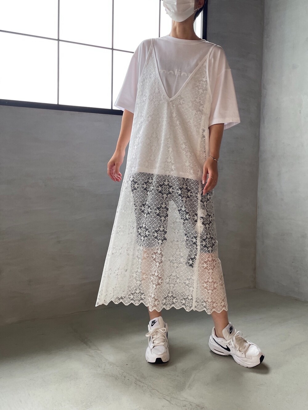 ショートパンツとレースワンピースで 清涼感プラスして、夏も大好きなモノトーンコーデ!