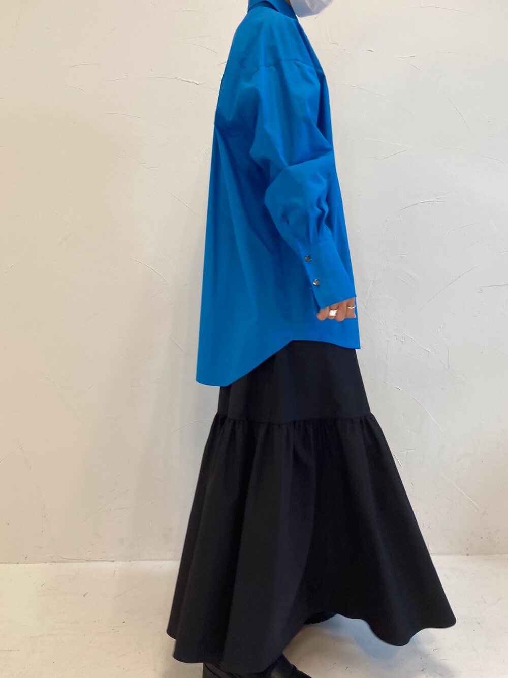 秋のスタートに一押しのカラーシャツ×ティアードスカートコーデ! カラーシャツは羽織でも1枚着としてもこれからの時期大活躍のアイテム👔 シンプルコーデこそカラーアイテムを取り入れて1ランク上のシンプルコーデを極めましょう★