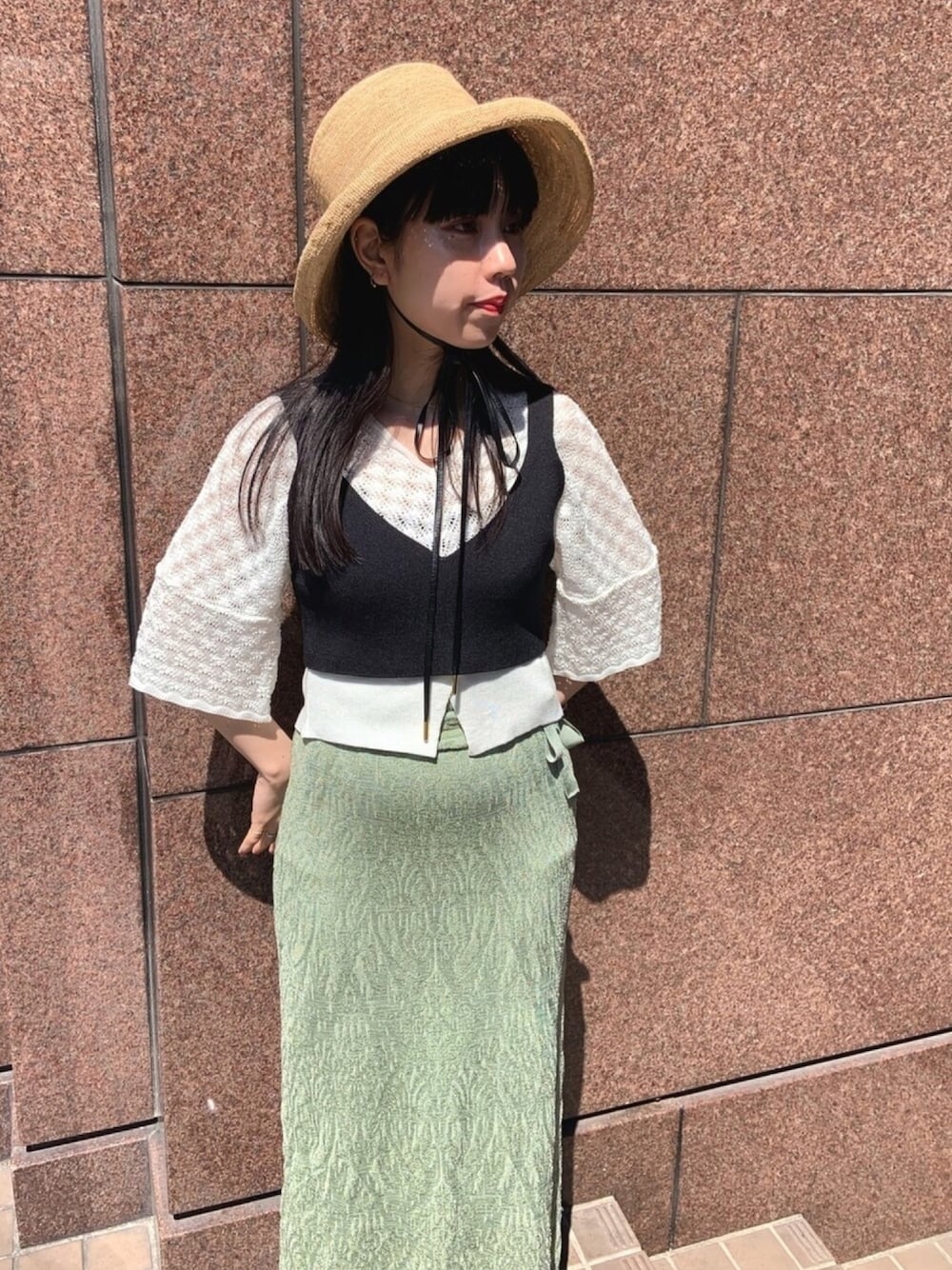 こんにちはMIDWEST名古屋店の堀です! TANのトップスとスカートで春スタイリングをしてみました!shinonagumoのハットで今年らしく抜け感を演出