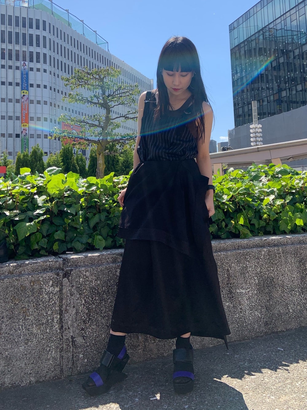 こんにちは!MIDWEST名古屋店の堀です!今日は昨日のスタイルの着回しパターン②ということで、ノースリーブver.です!同じワンピースでも、肩にかかる布の部分を付けたり外したりして、半袖、ノースリーブ2パターンが楽しめます! ※新型コロナウイルスの影響により、MIDWEST NAGOYA は現在臨時休業中です。オンラインストアとZOZOTWONは営業しておりますので、ご利用くださいませ。