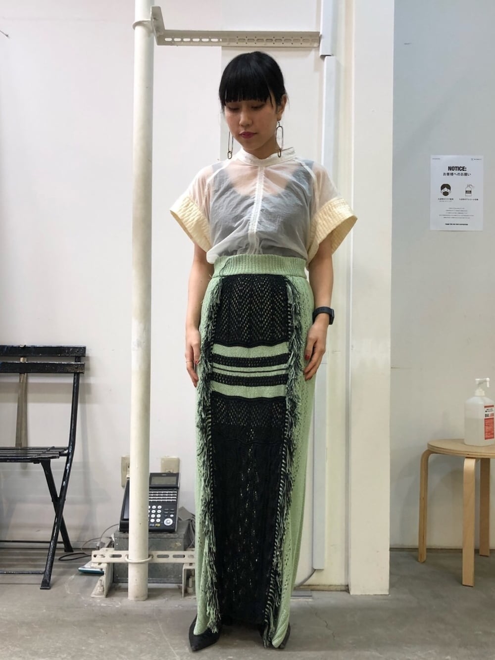 こんにちは!MIDWEST名古屋店の堀です!今日はMIDWESTとEBONYの別注ニットスカートでスタイリング!シンプルなトップスと相性が良いです!今年らしくシアー感を出して!