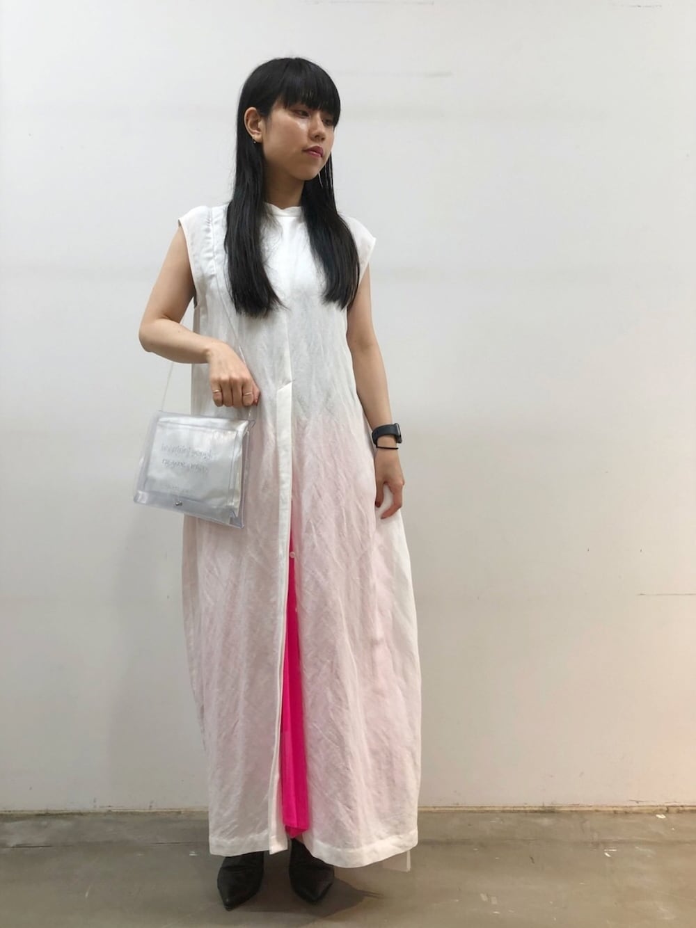 こんにちは!MIDWEST名古屋店の堀です!真っ白なロングワンピースで、夏らしく爽やかに!プラスでクリアバッグを持つとより今年らしさがでます!