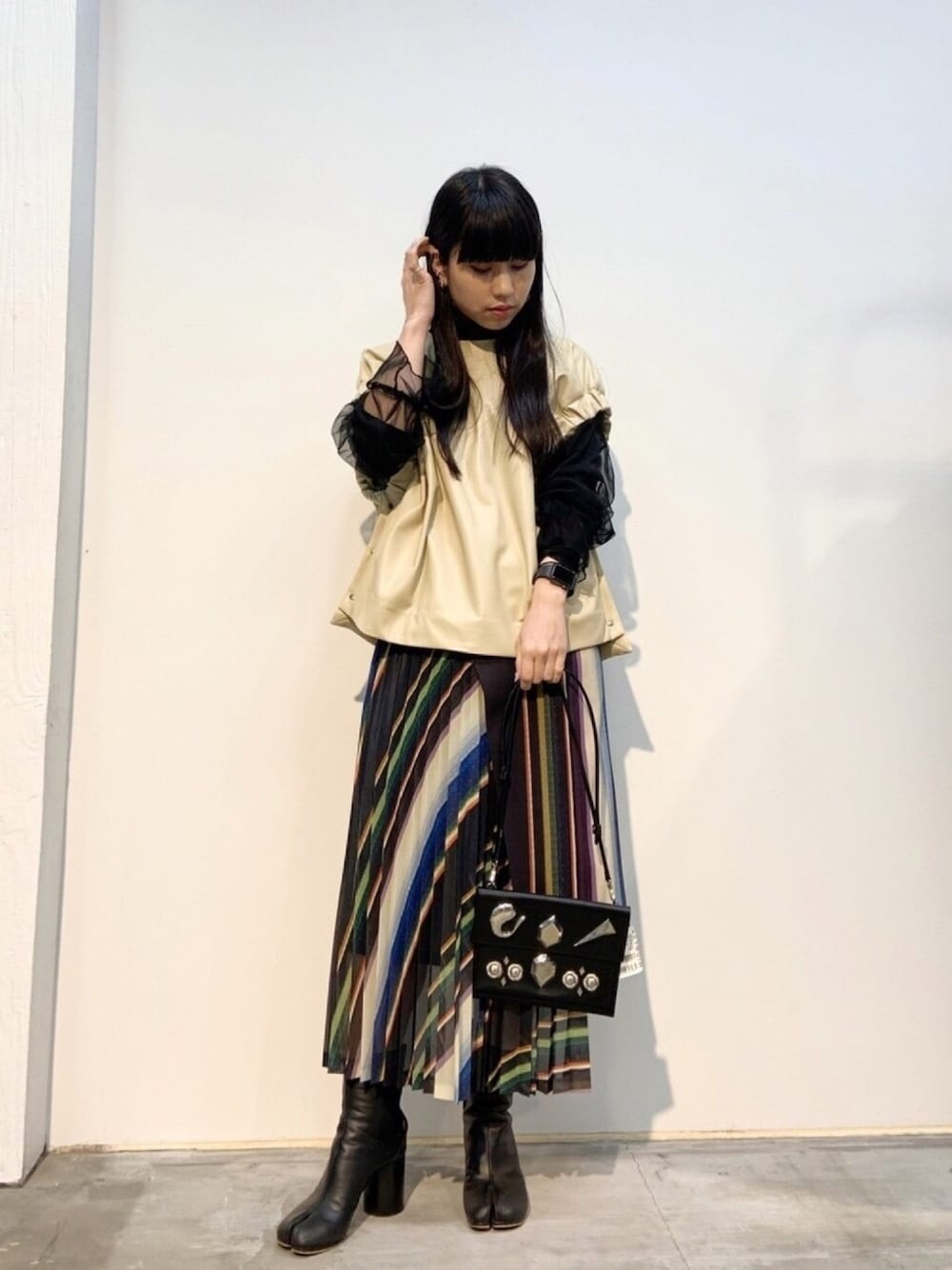 ホリユキノのスカート「TOGA PULLA スゥーティングウールプリーツストライプスカート」を使ったコーディネート
