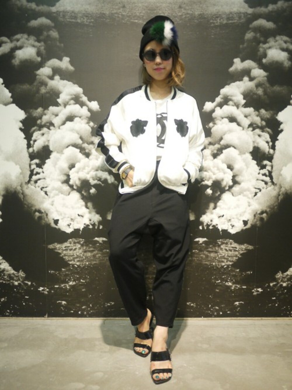 こんにちは!WEAR 初登場の堀です(#^.^#) 今回は603のスカジャンとスウェットサルエルパンツで やんちゃな男の子風?!をだしながら、 足元はヒールサンダルで女子らしさを出してみました☆ これから急に冷えたりするときに 603のスタジャンはさらっと羽織れて、なおかつインパクト大★ 着回しにもってこい!!のアイテムですよヽ(^o^)丿 スカジャン 、スウェットサルエルパンツ / 603 ニット帽 /yosiokubo サングラス / BLANC... サンダル / UNITED NUDE