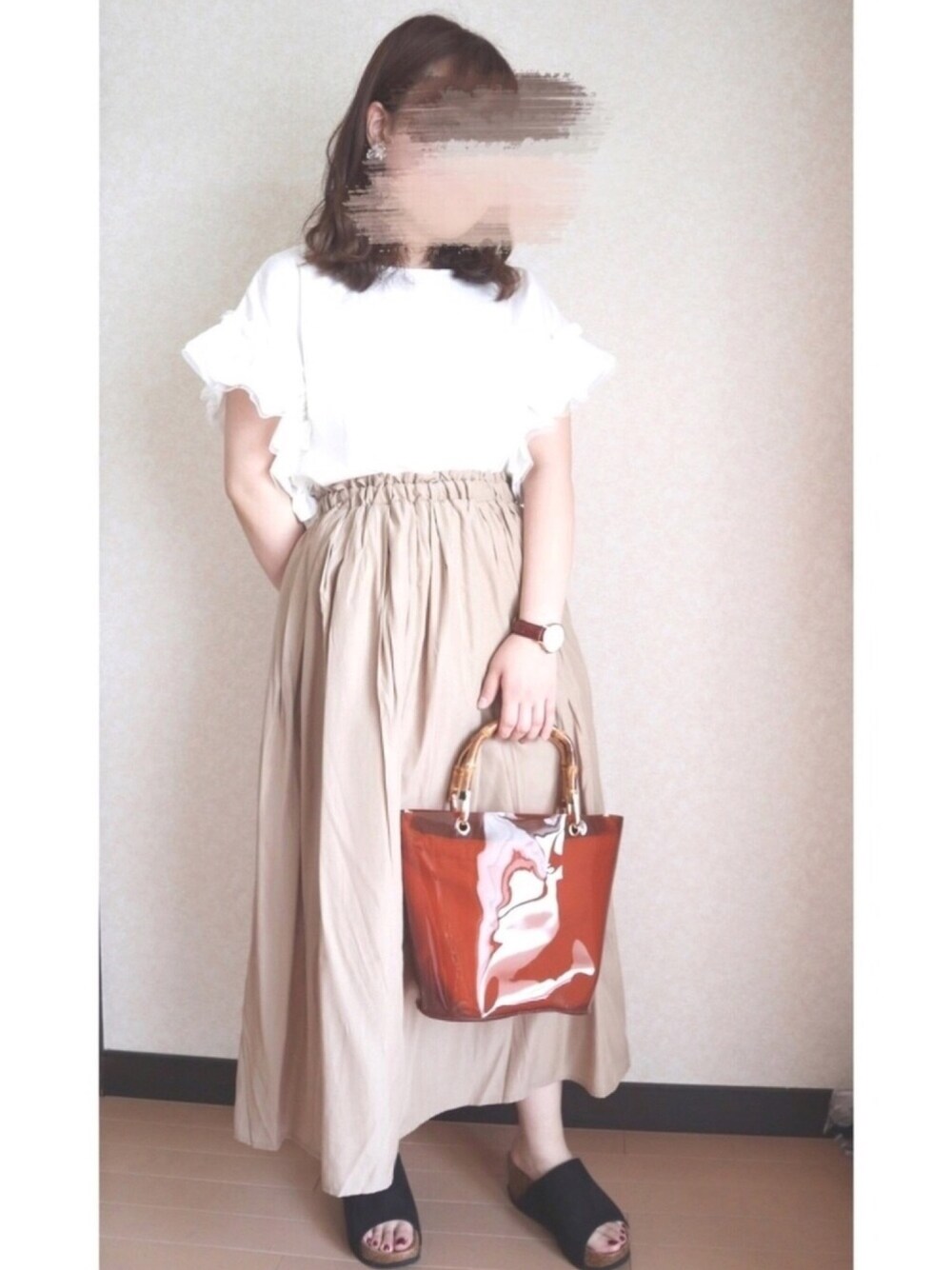 いつもご覧いただき、いいね、お気に入り、フォローありがとうございます🙈💕 最近お気に入りのベージュを使ったコーデです⭐️ トップスはローリーズファームのものでTシャツ生地でできていますが袖のヒラヒラ部分にはレースがついています✨袖にボリュームがあると腕が細く見えていいですよね🌈 お値段は元値¥3132がZOZOセールで¥895で購入できましたー👏🏻✨ サイズ トップス M スカート F サンダル M 154cm ぽっちゃり プチプラ instagram→nae.tomizawa