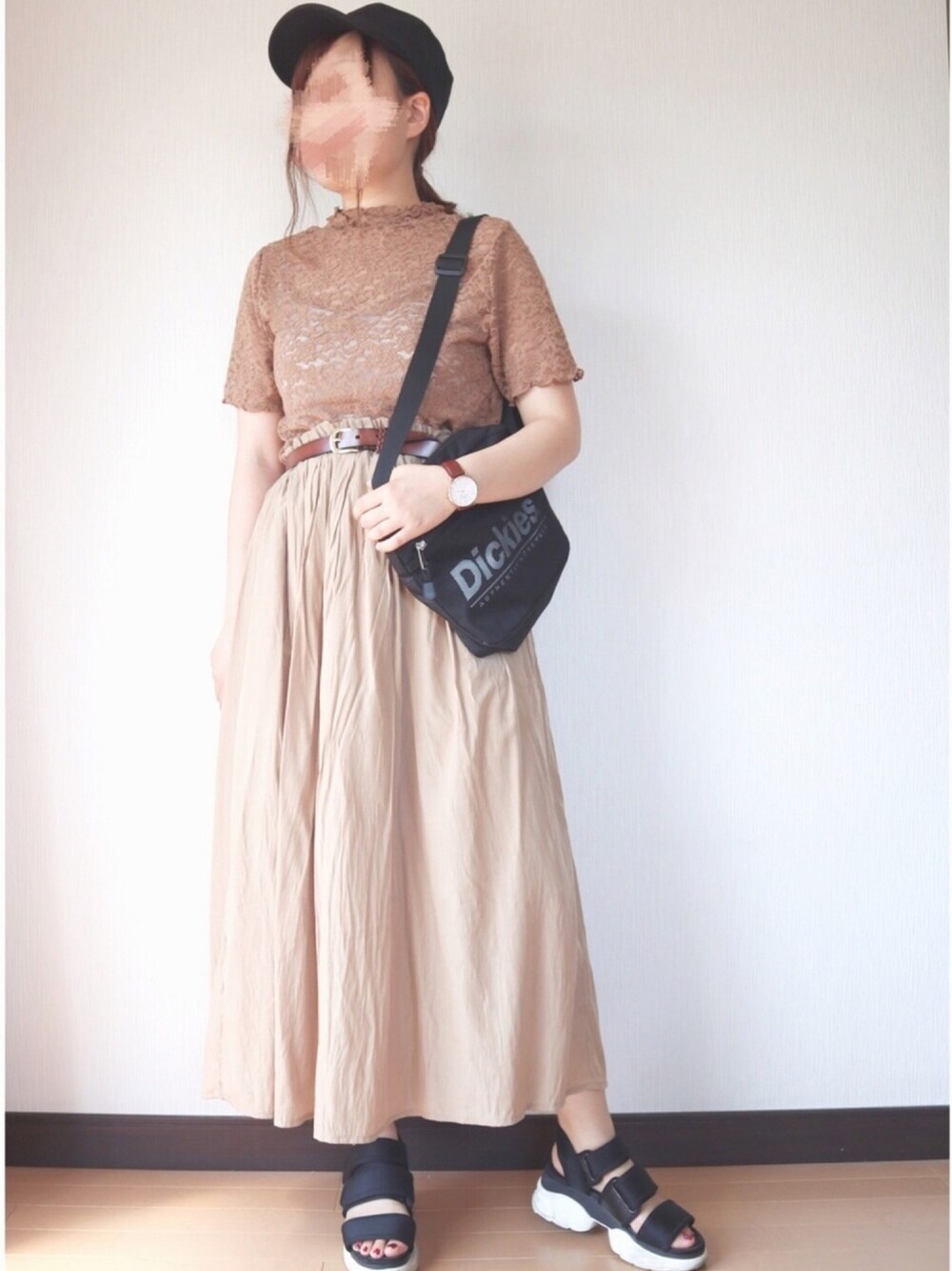 いつもご覧いただきいいね、お気に入り、フォローありがとうございます❤️ 今回はブラウン系のワントーンコーデしてみました! 小物をブラックで揃えたので正確にはワントーンではないかな?笑 トップスはGUのもの。ブラウンのレーストップスで透け感があるのでインナーは必須です😊 首元がフリルネックになっていて可愛いです💕 レーストップスとスカートで女子らしくなったので小物はスポーティなものを合わせました⭐️✨ サイズ トップス L スカート F サンダル M 154cm ぽっちゃり プチプラ instagram→nae.tomizawa