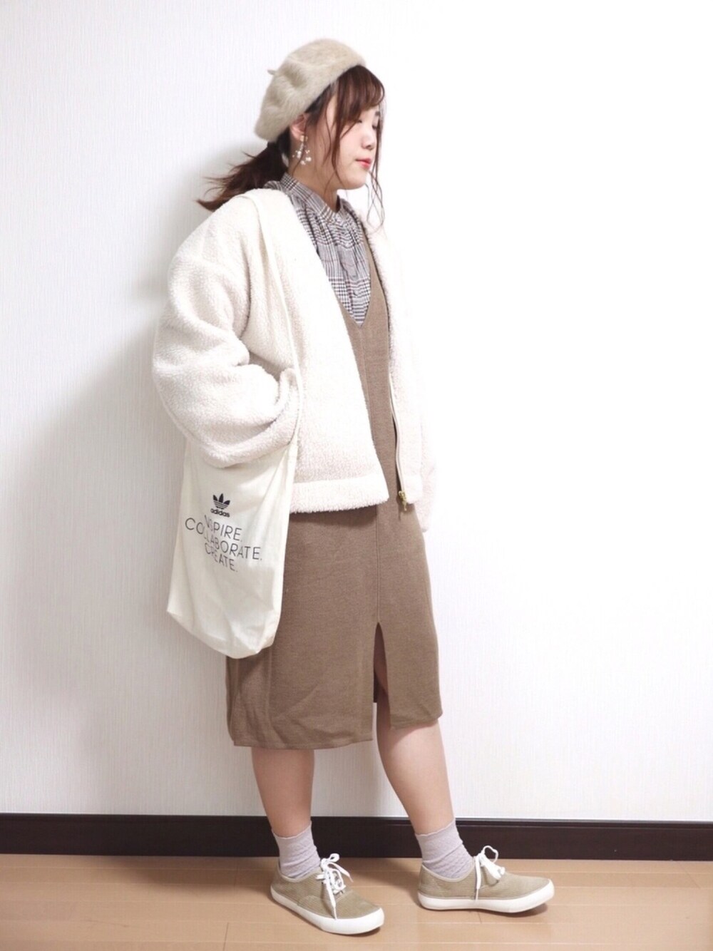 いつもご覧いただきいいね、お気に入り、フォローありがとうございます💖 今回はブラウンとホワイトのナチュラルコーデ! しまむらで今年の夏の終わりくらいに購入したニットワンピース。もうそろそろ寒くて着れなくなってしまうので着てみました😅 靴がコーデュロイ素材でアウターがボアなのでとっても冬らしくなったと思います❄️ サイズ アウター XL トップス L ワンピース M 靴 M 154cm ぽっちゃり プチプラ instagram→nae.tomizawa マイペースに更新してますのでよかったら遊びに来てください★