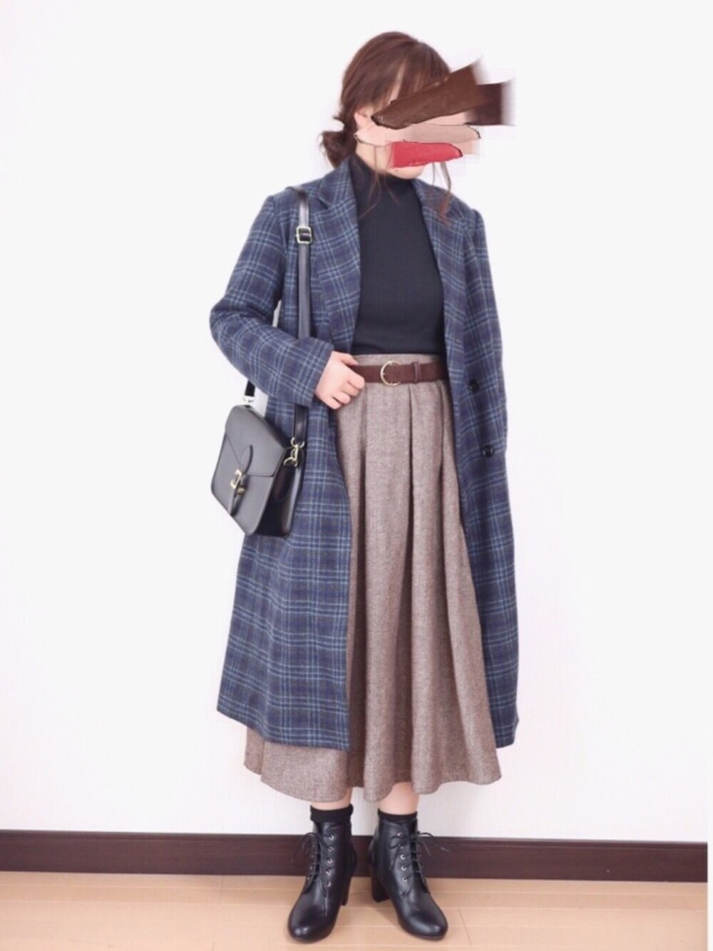 いつもご覧いただきいいね、お気に入り、フォローありがとうございます💖 今回は大人コーデ! ハイネックにチェスターコートの組み合わせってとっても大人っぽくなりますね😳✨ ハニーズのブーツも大人っぽい形なので綺麗目にコーデできます! サイズ トップス M スカートM コート M 靴 M 154cm ぽっちゃり プチプラ instagram→nae.tomizawa