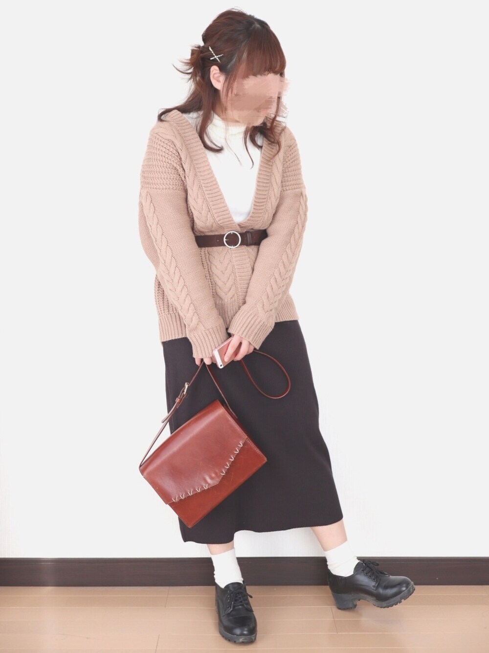 いつもご覧いただきいいね、お気に入り、フォローありがとうございます🌟 今回は昨日のコーデのアウターを脱いだバージョン! ベージュのしまむらのカーディガンはボタンが付いていないタイプなのでベルトでとめています。高めの位置にベルトを持ってくることで脚長効果もあるかと😁✨ wclosetのスカートは丈感もちょうど良いし綺麗なシルエットなのでお気に入り💕 サイズ トップス M カーディガン M スカートF 靴 M 154cm ぽっちゃり プチプラ instagram→nae.tomizawa