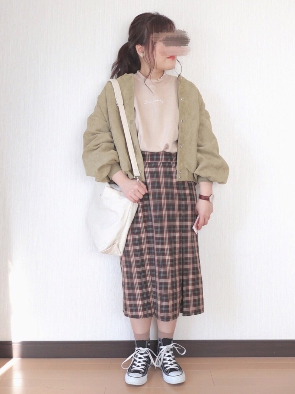 いつもご覧いただきいいね、お気に入り、フォローありがとうございます😊 今回はカジュアルコーデ! くすみ色を選ぶことで大人っぽくカジュアルスカイルになるようにしました🌟 サイズ トップス M アウター M スカート M 154cm ぽっちゃり プチプラ instagram→nae.tomizawa