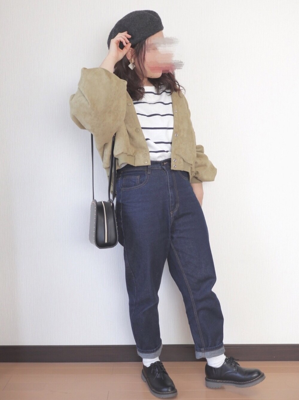 いつもご覧いただきいいね、お気に入り、フォローありがとうございます😊 今回はレトロガールの春色ブルゾンでコーデ! このブルゾンは腕にボリュームがあるデザインでスエードのような肌触りがします。色はライトグリーンで普段は自分じゃ選ばないような色なのですが少しくすんだ色味で落ち着いた雰囲気で着られるので購入しました🌟もうすぐ春だしオフホワイトのトップスやボトムと合わせたらめっちゃ可愛いだろうな〜🌸💕 サイズ トップス L パンツ M アウター M 靴 M 154cm ぽっちゃり プチプラ instagram→nae.tomizawa
