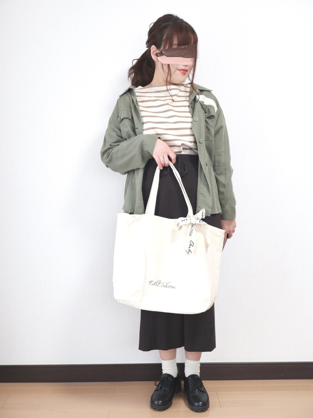 いつもご覧いただきいいね、お気に入り、フォローありがとうございます😊 今回はカーキのシャツを羽織に着たコーデ! 黒ボーダーよりもブラウンのボーダートップスと合わせるとこなれ感?が出て可愛いかなと思いました💗 サイズ トップス S スカート F 154cm ぽっちゃり プチプラ instagram →nae.tomizawa
