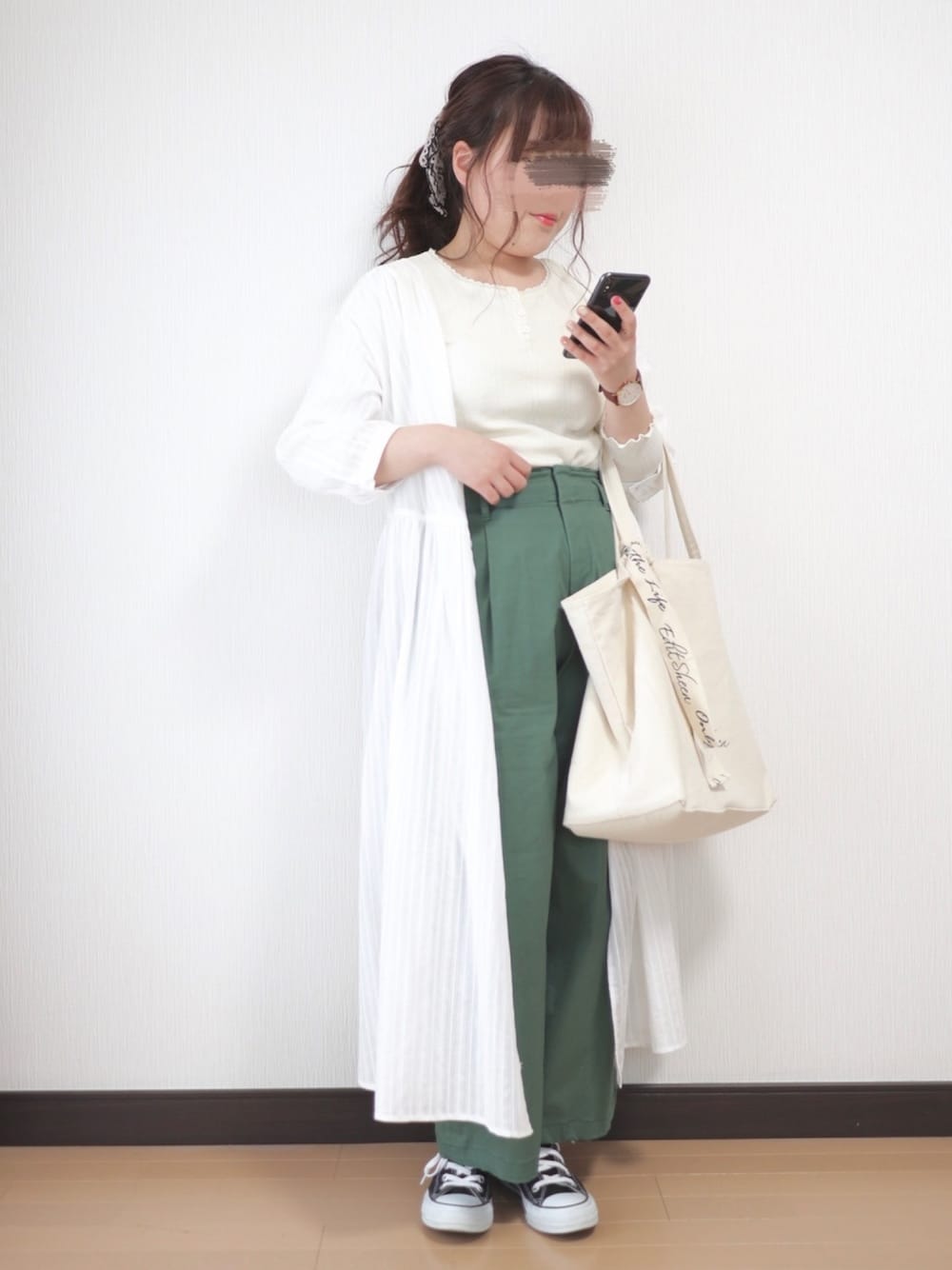 いつもご覧いただきいいね、お気に入り、フォローありがとうございます😊 今回は緑を差し色にした春コーデ! 去年ユニクロで購入したワイドパンツの色が鮮やかで春らしいなと思ったので合わせてみました🌸 サイズ トップス L ワンピース M 154cm ぽっちゃり プチプラ instagram→nae.tomizawa