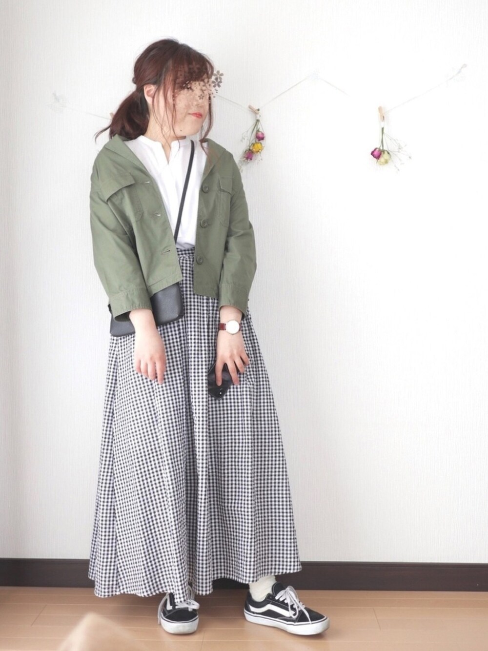 いつもご覧いただきいいね、お気に入り、フォローありがとうございます😊 今回はハニーズで購入したミリタリージャケットでコーデ! ショート丈のミリタリーを探していたらハニーズで発見!2480円でした💗✨ 安っ!!笑 ミリタリーにギンガムチェックは相性バツグンですね👌🏻 サイズ トップス M アウター M スカート F 154cm ぽっちゃり プチプラ instagram→nae.tomizawa
