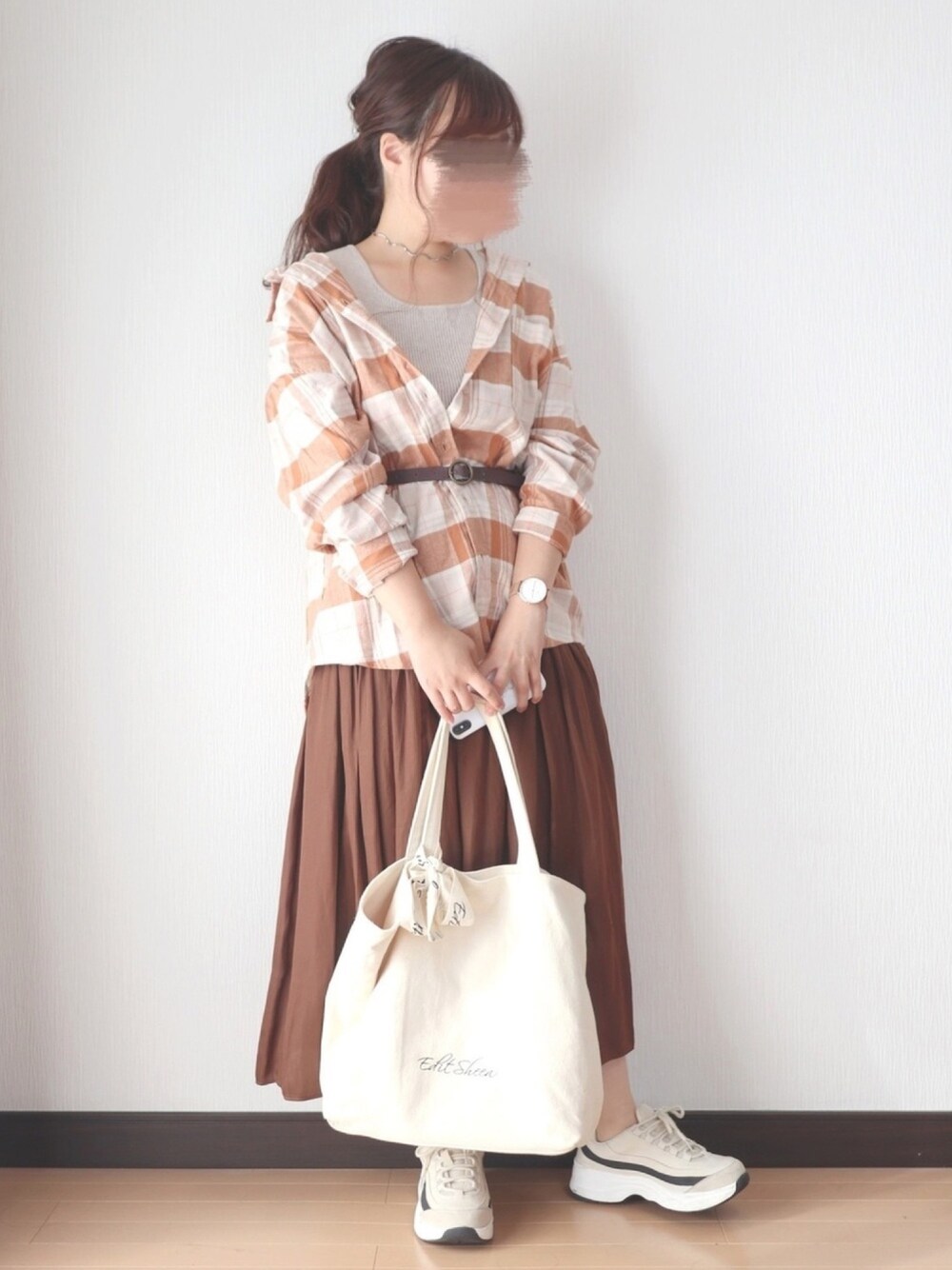 いつもご覧いただきいいね、お気に入り、フォローありがとうございます😊 今回はチェック柄シャツコーデ! 以前着ていたチェックシャツを着まわししました!前はパンツ合わせでしたが今回はスカートで❤️ 大きめシャツはボタンを閉めて着るときはベルトでウエストマークするのがポイント✨ サイズ インナー M トップス F スカート M 靴 M 154cm ぽっちゃり プチプラ instagram→nae.tomi