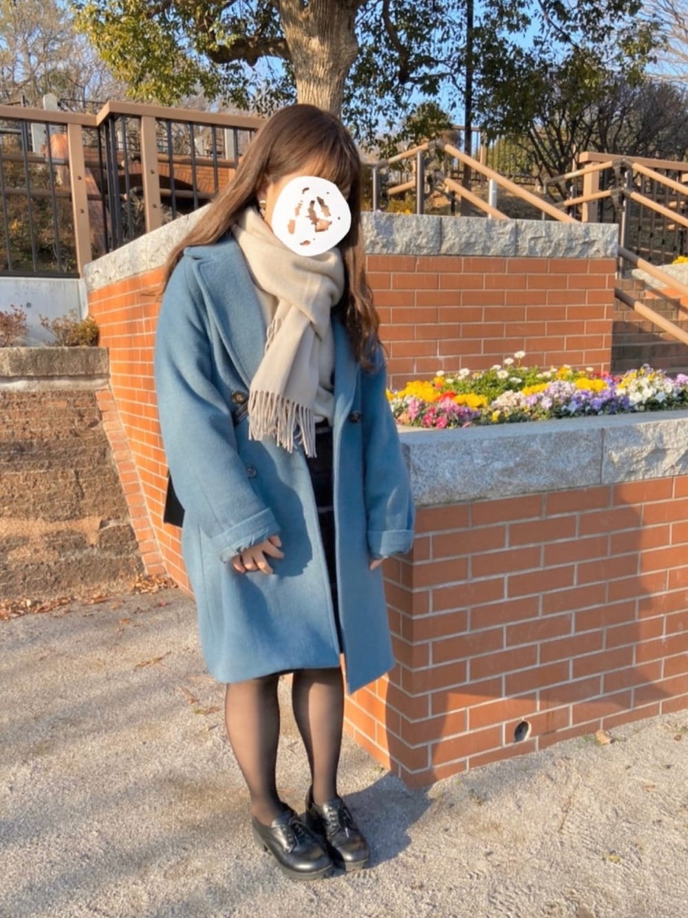 いつもご覧いただきいいね、お気に入り、フォローありがとうございます😊 今回は旦那とイルミネーションを見に行った時のデートコーデ! GUのブルーのアウターメインにコーデを組みました✨ デートだったのではりきって膝上のスカートをはきました!タイツだけだとちと寒いので靴から出ない丈の黒靴下を重ね履きしてます🙊 このベージュのマフラーとコートの色味がすごく合ってお気に入りのコーデです💓 サイズ トップス M スカート M コート L 154cm ぽっちゃり プチプラ instagram→nae.tomi