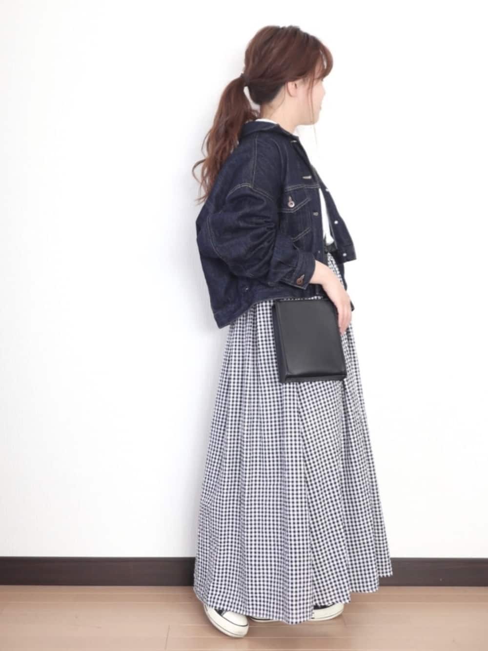 いつもご覧いただきいいね、お気に入り、フォローありがとうございます😊 今回は大人カジュアルコーデ! 白Tにデニムジャケットとギンガムチェックの組み合わせは定番カジュアルな組み合わせ! ですがギンガムチェックのスカートの丈が長めな事で大人っぽく見せてくれます✨ 髪型もゆるローポニーにしてラフさと大人っぽさをだしました💕 可愛いし体型カバーもできる最高コーデ! サイズ トップス S(メンズ) スカート F アウター F 154cm ぽっちゃり プチプラ instagram→nae.tomi