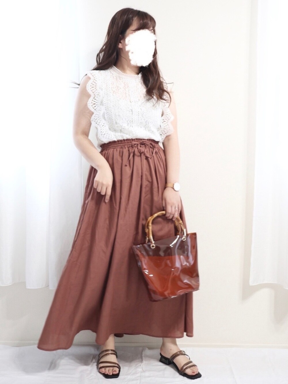 いつもご覧いただきいいね、お気に入り、フォローありがとうございます! 今回はキレイめ夏コーデ✨ レーストップスにくすみオレンジブラウンのスカートを合わせて大人っぽくコーデしました! 二の腕の太さをカモフラージュするために髪の毛は下ろしてます😂 サイズ トップス M スカート M 154cm ぽっちゃり プチプラ instagramも頑張ってるので覗いてみて下さい👀 instagram→@nae.tomi