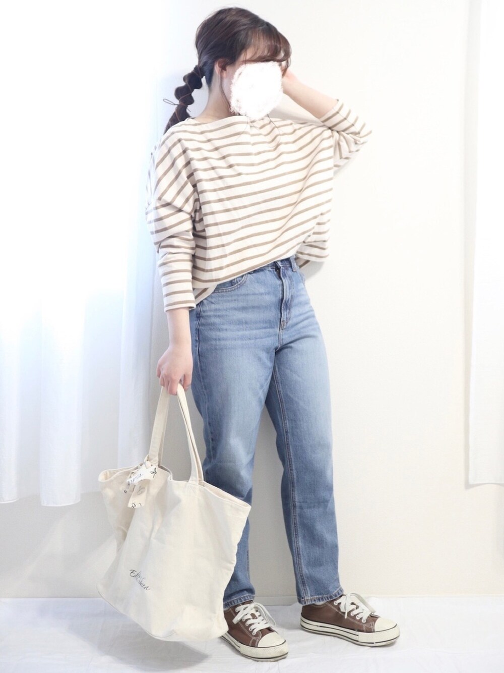 いつも見ていただきいいね、お気に入り、フォローありがとうございます! 今回はシンプルカジュアルコーデ💓 ボーダーTにデニムというめちゃくちゃシンプルな合わせだから髪型はヘアアレンジをして少しでもおしゃ見えできるようにしました! サイズ トップス:S パンツ:L 154cm ぽっちゃり プチプラ Instagramもよかったら見てみてください🌸 Instagram→@nae.tomi
