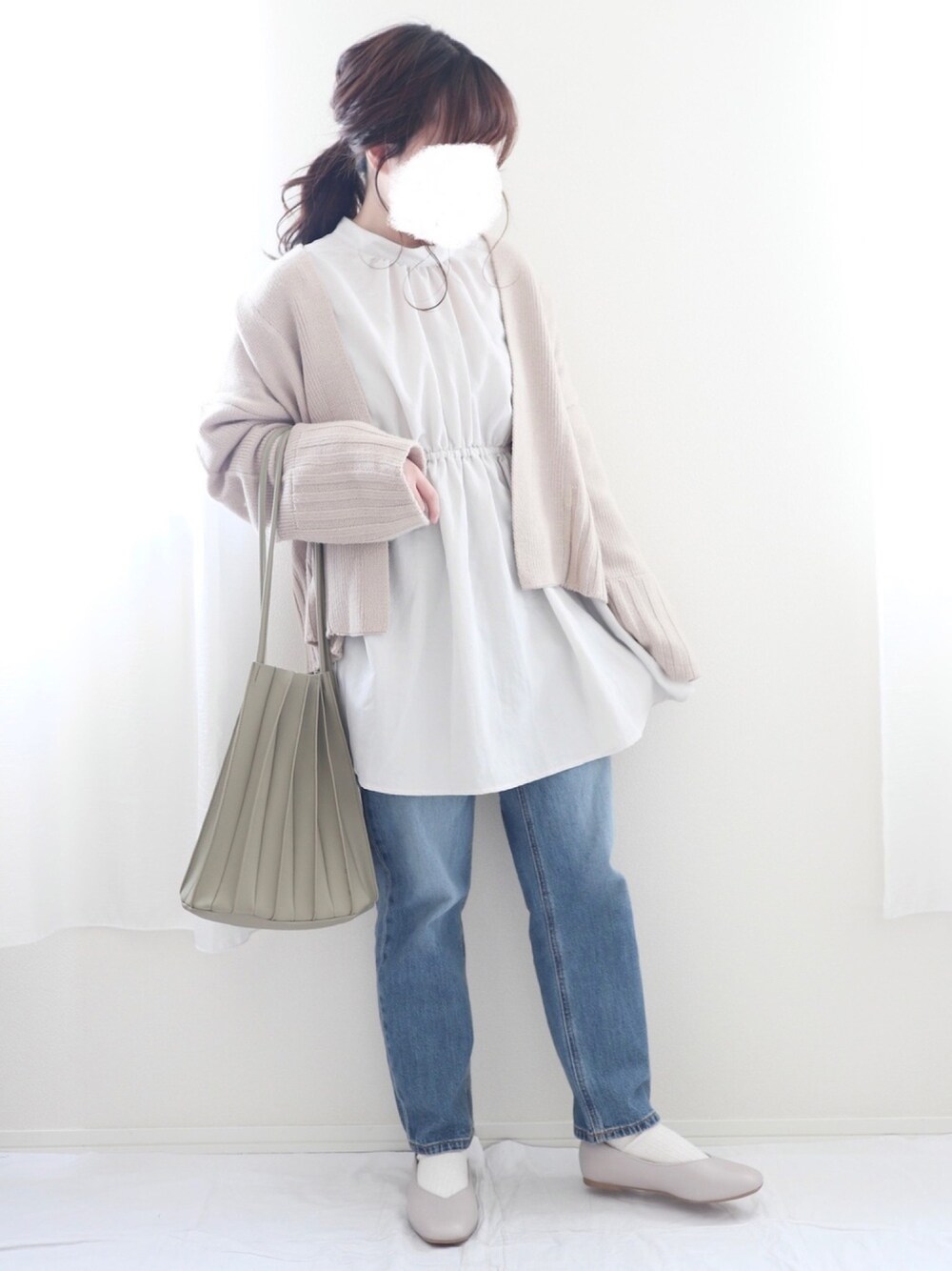いつもご覧いただきいいね、お気に入り、フォローありがとうございます! 今回は春のカジュアルコーデ🌸 ブラウスとデニムのカジュアルコーデにカーディガンを羽織りました✨ シンプルなコーデなのでバッグをプリーツバッグにしてコーデのポイントにしてみました! サイズ トップスM カーディガン F パンツL 154cm ぽっちゃり プチプラ instagramもよろしくお願いします🌷 instagram→@nae.tomi