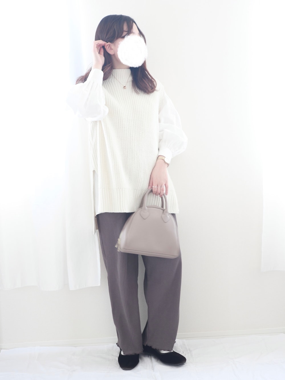 nae*°のベスト「【ZOZO限定】サキシマamp「ウエストベルトツキニットベスト」」を使ったコーディネート