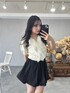 フロントにはふんわりフリルチュールを施していて、軽やかでエレガントなデザイン 春夏にぴったりで、トップスとしてはもちろんカーディガン風に刃織っても可愛く着ていただけます! 裾がふっくら膨らんだバルーンシルエットがポイントのスカパンです! ハリのある素材感で、形もきれいにキープしてくれるので動いてもシルエットが崩れにくい!しかも中がパンツ仕様になってるので、ミニ丈でも安心して履いていただけます!