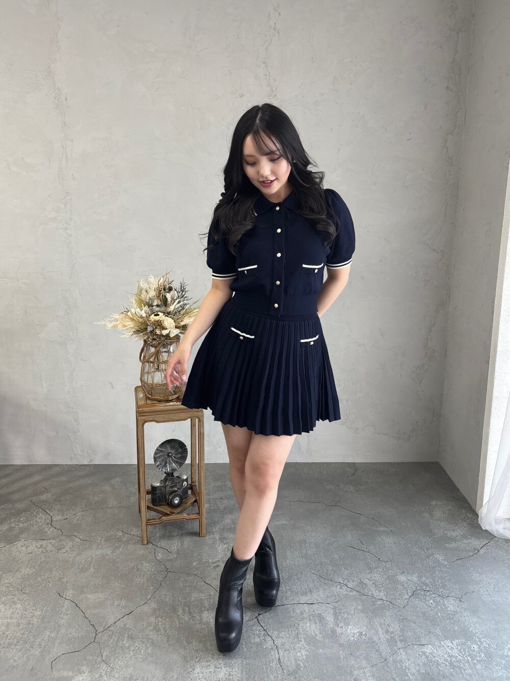 nt2002(INGNI フジグラン神辺店)のセットアップ「襟付ニットカーディガン+ニットミニスカパン/セットアップ」を使ったコーディネート